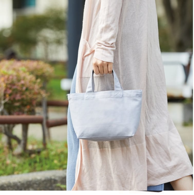 厚みのあるしっかりとした生地を使用したトートバッグSサイズです。中身が見えない仕様のベロ付きファスナーと、底にはマチがあるベーシックなデザイン。お財布と携帯、ポーチにペットボトルなど、ちょっとしたお出かけ時の荷物を入れるのにぴったりサイズになっています。